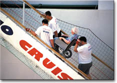 乗船を助けるボランティアスタッフ